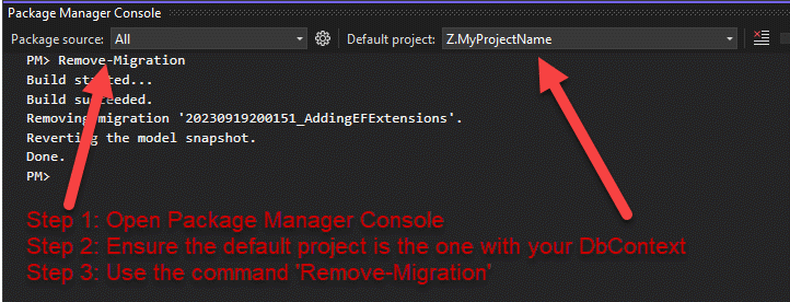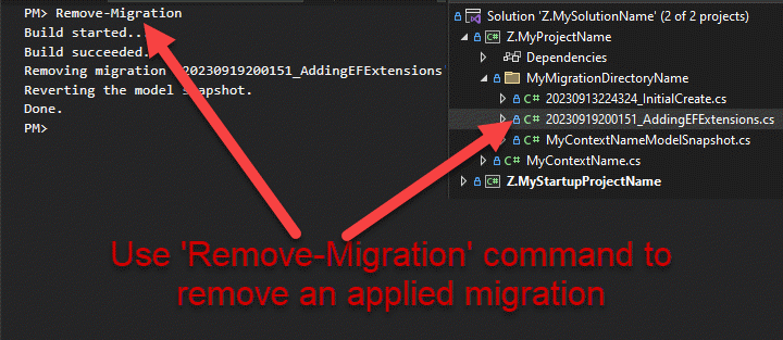 Remove-Migration -Force -Context Z.MyContextName -Project Z.MyProjectName -StartupProject Z.MyStartupProjectName